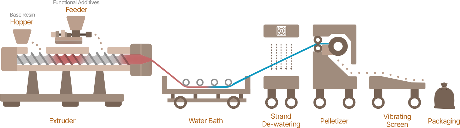 Functional raw materials such as graphene, natural minerals, and plant-based oil are precisely dispersed into polymer resin to produce a functional masterbatch that contains GREEVO’s core technology.